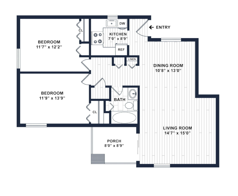 2 Bedrooms | 1 Bathroom | 980 Sq. Ft.